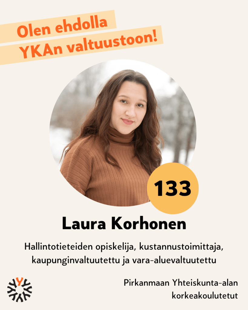 Olen ehdolla Yhteiskunta-alan korkeakoulutettujen ammattiliiton liittovaltuustovaaleissa. 40-henkinen liittovaltuusto päättää liiton talouden ja toiminnan linjoista.